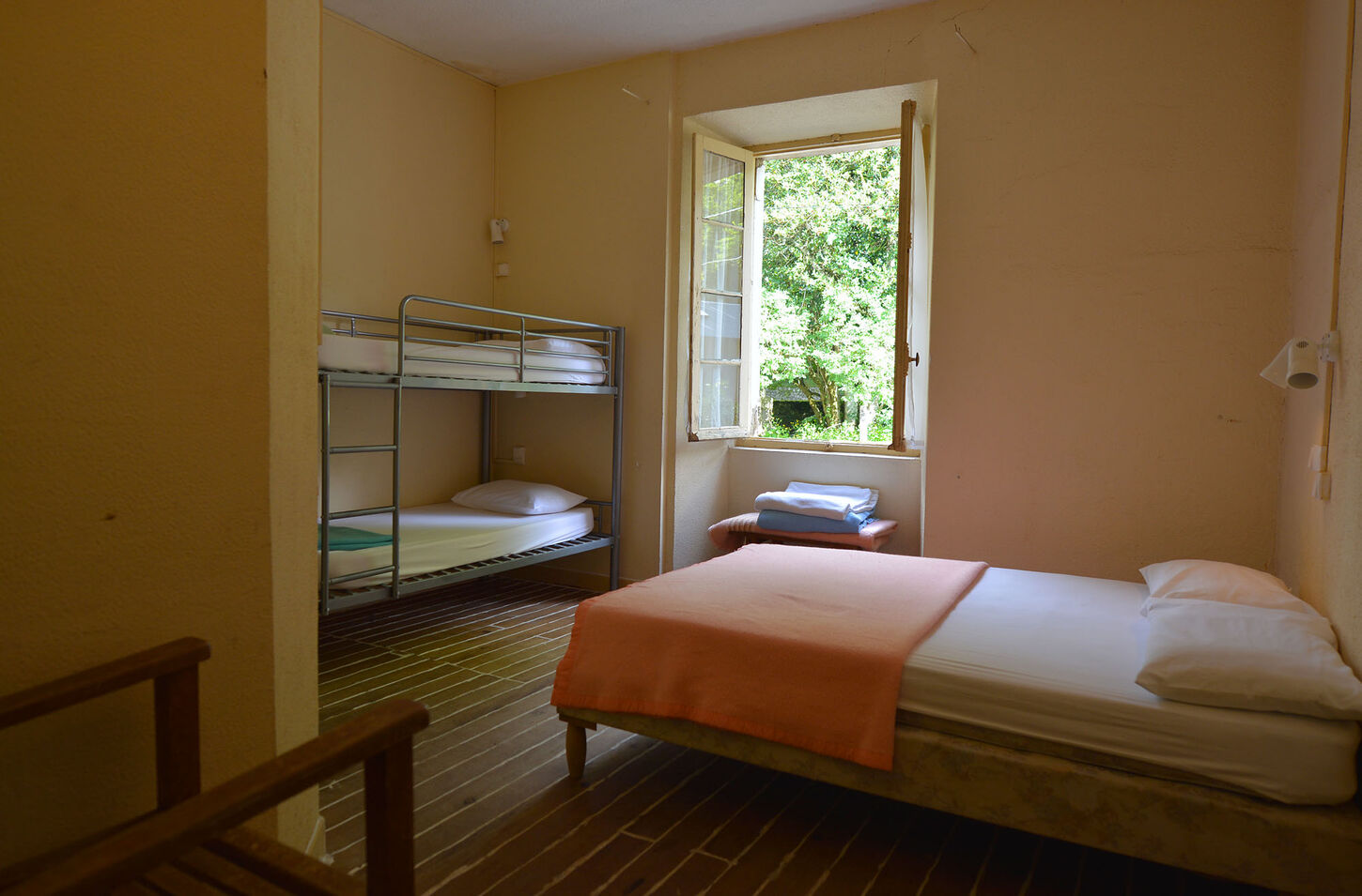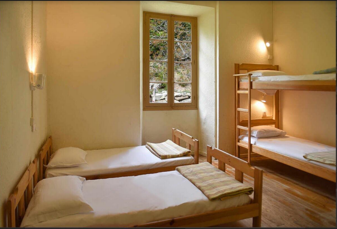 Notre gîte d'étape, situé en face de l'hôtel, propose 10 chambres de quatre lits avec douche et wc et vous accueille en pleine fôret, au coeur de la Corse.